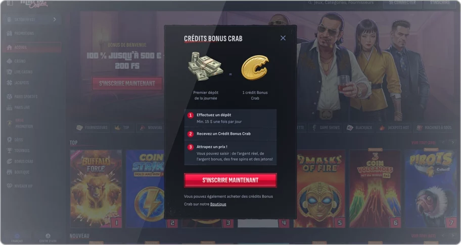 - Surveille les programmes VIP et promos spéciales. Certains casinos offrent des jetons Bonus Crab supplémentaires aux joueurs fidèles (via le shop de fidélité ou en récompense de missions). Par exemple, sur Magius j’ai échangé des points contre un Bonus Crab gratuit. Reste à l’affût de ces opportunités, c’est du bonus facile à prendre.