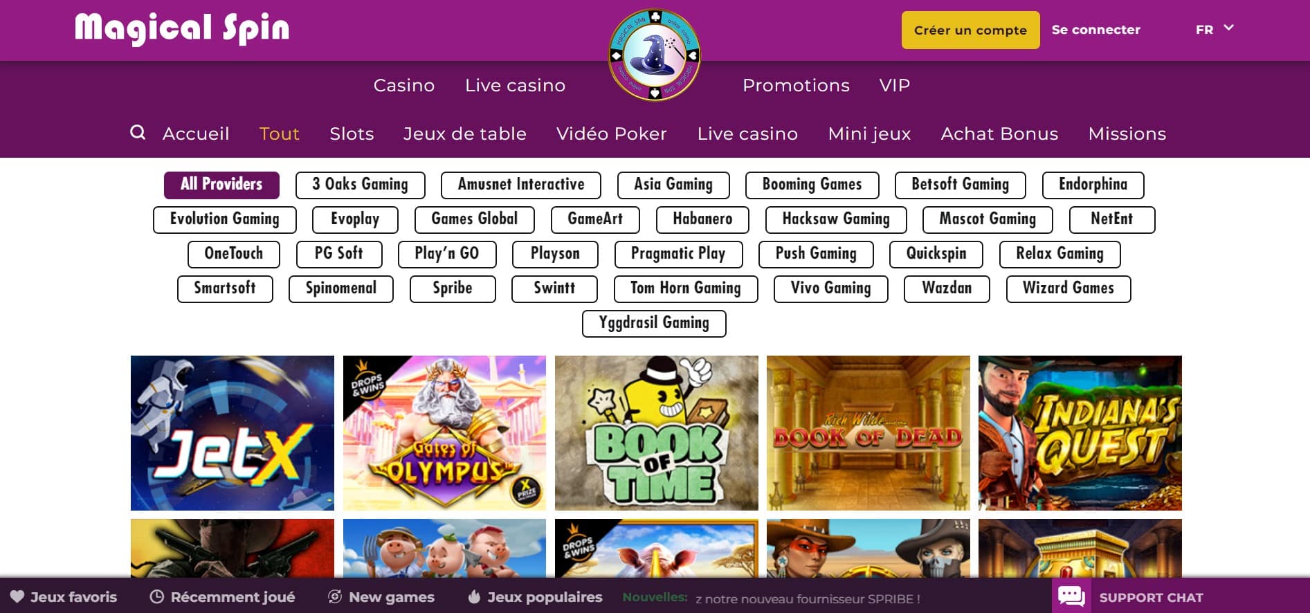 Opérant sous licence de Curaçao depuis 2017, Magical Spin est un casino bien établi. Il propose une ludothèque solide de plus 3 000 jeux, comprenant des machines à sous, du live casino et des jeux de table de grands éditeurs comme Betsoft, Play’n GO ou Evolution.