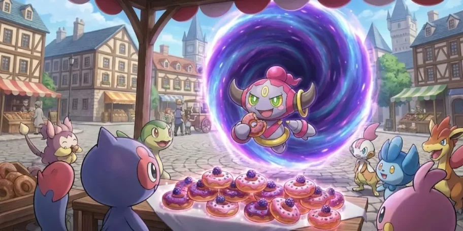 Hoopa utilise le Beignet Cauchemar pour activer sa propre Méga-Évolution pendant l’affrontement. Cette transformation temporaire booste ses statistiques et lui permet de tenir la faille ouverte plus longtemps. Vous bénéficiez aussi d’un bonus de niveaux pour votre équipe grâce aux propriétés du donut.
