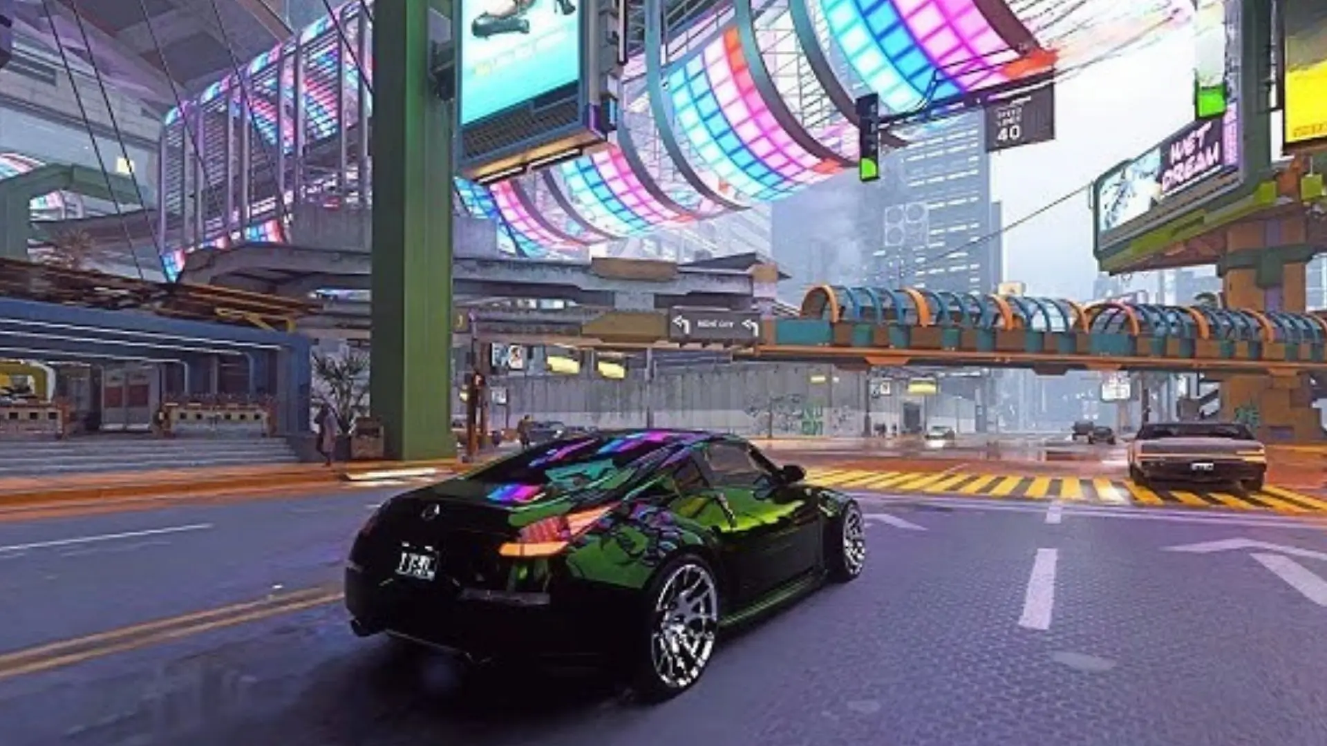 Le rendu visuel franchit un palier grâce au Path Tracing intégral. Chaque reflet sur les carrosseries ou dans les flaques d’eau de Night City réagit de manière dynamique. La ville s’anime avec une précision chirurgicale. Les textures urbaines semblent palpables.
