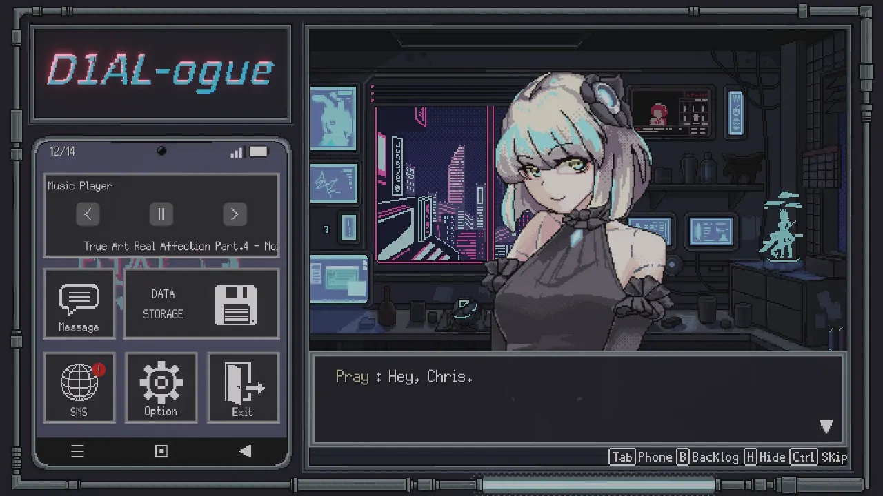 D1AL-ogue vous place dans la peau d’un technicien de Chroma City, une métropole cyberpunk où le soleil ne se lève jamais. Seule la lumière artificielle du « Neon-Shine » éclaire les ruelles de ce décor néon-noir inspiré de l’esthétique PC des années 90.