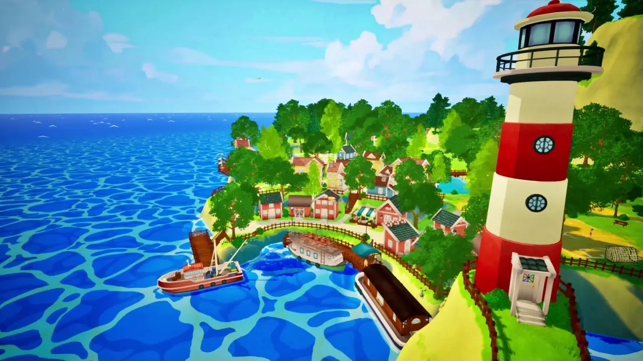 L’île mélange influences scandinaves et japonaises, un parti pris esthétique original qui donne au jeu une identité visuelle immédiatement reconnaissable. Les environnements colorés, forêts denses, montagnes, vergers, sanctuaires mystérieux, invitent à la promenade et à la curiosité.