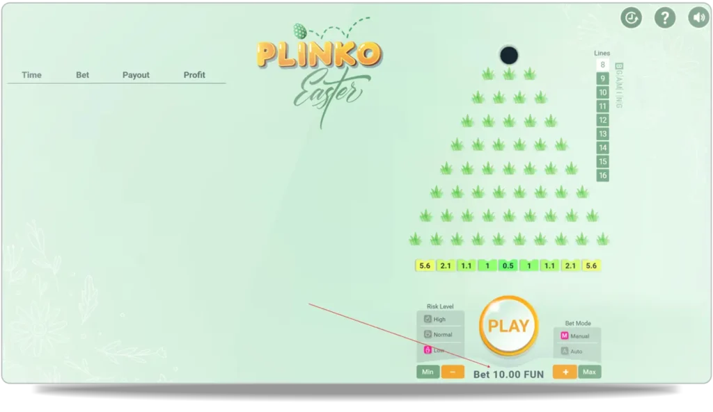 • 🍒 Faites plusieurs petits paris pour accumuler des gains : plutôt que de faire une seule mise élevée, divisez votre budget en plusieurs petits paris. Exemple : si vous avez 20 €, au lieu de tout miser en une fois, jouez 20 mises de 1 €. Plinko permet ainsi de répartir le risque et de multiplier les opportunités de gains.