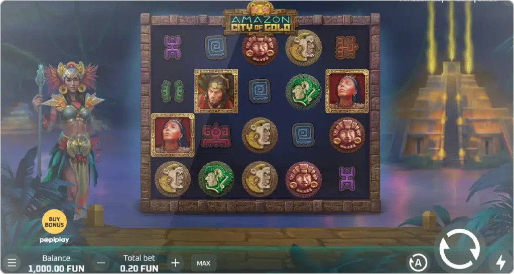 Amazon City of Gold™ fusionne civilisation cyberpunk et jungle amazonienne. Les Wilds empilés couvrent des rouleaux entiers avec des multiplicateurs jusqu’à 200x. La fonction respin se déclenche avec 6 symboles or ou plus.