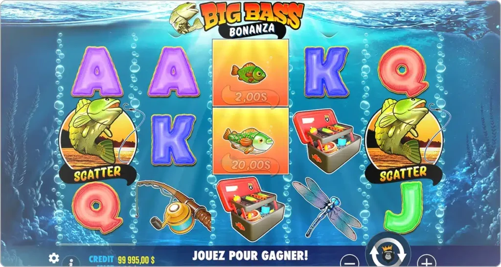 Big Bass Bonanza™ s’adresse aux amateurs de slots simples et efficaces, avec une ambiance inspirée du monde de la pêche. La machine se compose d’une grille 5×3 avec 10 lignes de paiement fixes. Le bonus se déclenche en obtenant 3 symboles Scatter ou plus.
