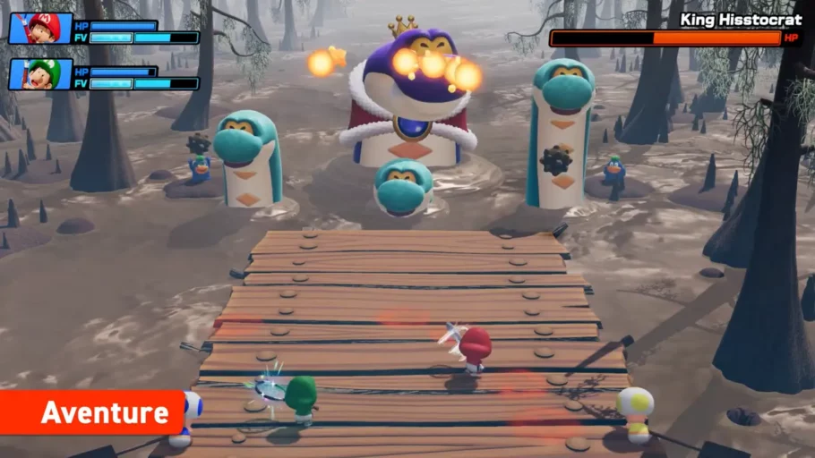 L’un des reproches récurrents adressés à Aces concernait la maigreur de son mode solo. Nintendo semble avoir pris note. Mario Tennis Fever intègre un mode Aventure dans lequel Mario et ses compagnons sont transformés en bébés par des créatures mystérieuses sur une île reculée. Pour retrouver leur forme normale, ils doivent réapprendre à jouer au tennis en affrontant des boss et en remplissant des missions intégrées au gameplay.
