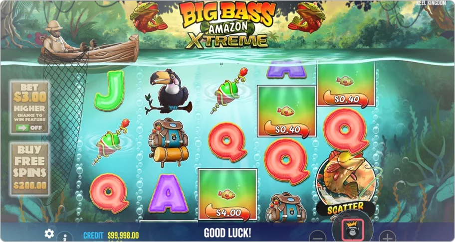 Côté ambiance, Big Bass Amazon Xtreme vous transporte dans un décor tropical haut en couleur, avec des symboles de poissons, d’hameçons et le célèbre pêcheur barbu. L’atout phare reste le mode bonus, où chaque capture peut faire exploser vos gains grâce aux multiplicateurs et aux tours gratuits.