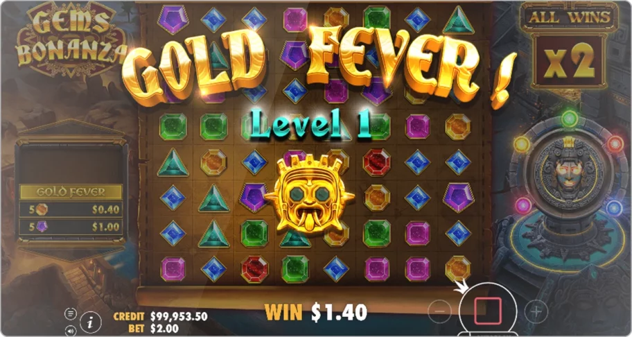 - Remplissez la jauge Gold Fever – Atteignez le niveau suivant pour bénéficier de multiplicateurs encore plus élevés.