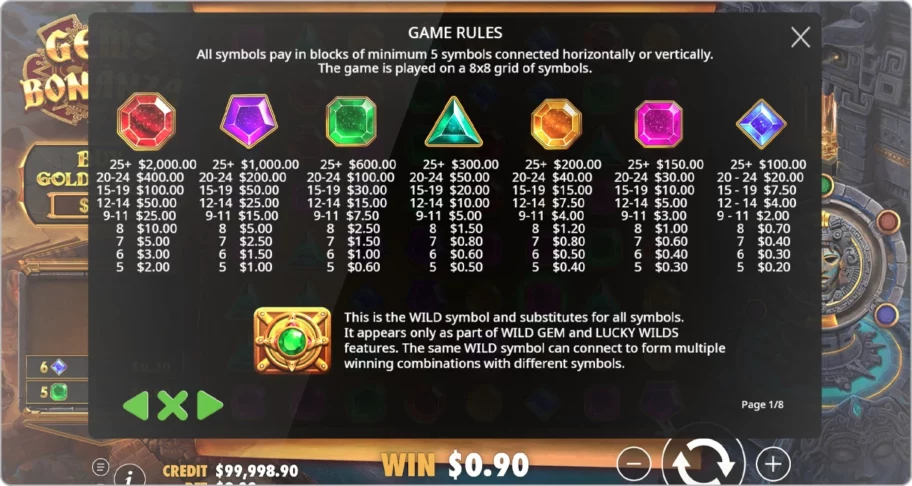 - Wild Gem : transforme des symboles en jokers