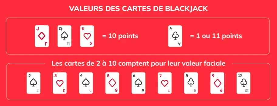 Avant de consulter le tableau probabilité blackjack, tu dois parfaitement connaître la valeur de chaque carte. Cette base te permettra de calculer instantanément ton score et d’anticiper les possibilités en fonction du nombre de jeux de cartes.